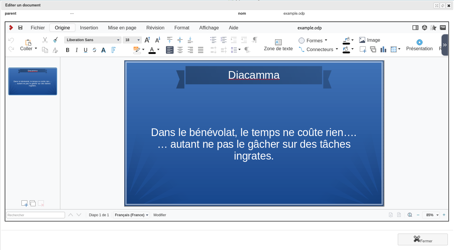 Cet outil, intégré au gestionnaire de document de Diacamma et de NextCloud, vous permettra d'éditer et de modifier vos documents directement en ligne.